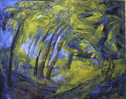 Am Waldrand blüht Raps - Monotypie mit Ölfarbe überarbeitet - ca. 40 x 50 cm - 2012