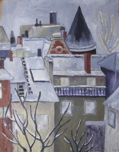 Atelierausblick in der Wartenau bei K.Frank - Ölfarbe - 49 x 63 cm - 1973