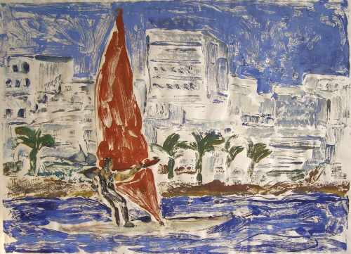 Ferien! - Kleister-Monotypie - 51,5 x 71 cm - 1988