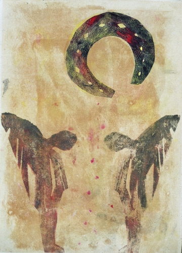 Andacht - Monotypie mit Papierschnitten (verkauft) - A3 Format - 1989