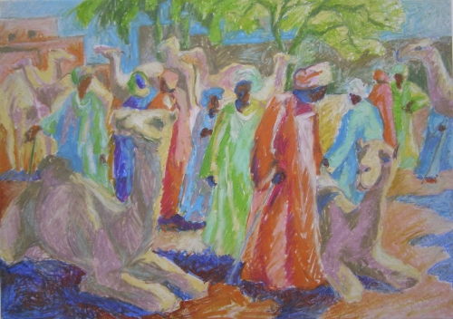 Markt in Marokko I - Enkaustik - A3 Format - 1995