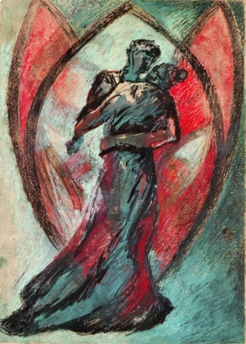 Liebespaar - Enkaustik auf Monotypie (Hochzeits-Geschenk) - A3 Format - 1996