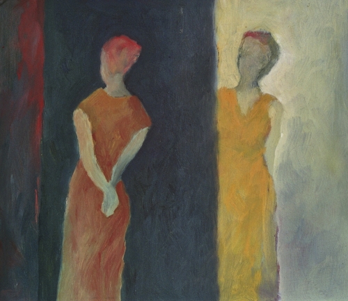 Hinter den Kulissen (verkauft) - Eitempera auf Pappe - ca. 24 x 32 cm - 1997
