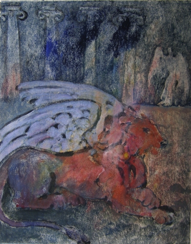 Löwe und Engel - Monotypie - ca. 40 x 50 cm - 2001