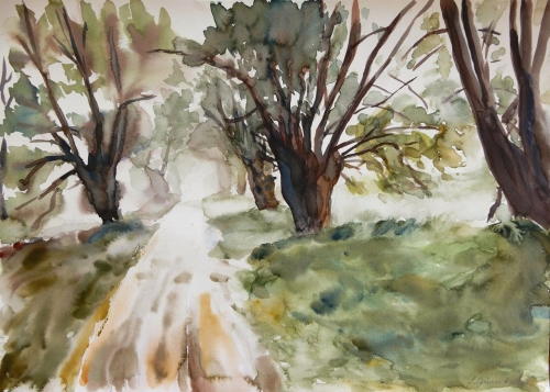 Herbst-Spaziergang - Aquarell - Fingermalerei