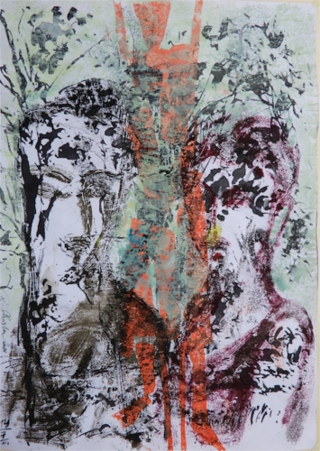 Frühlings-Paar - Monotypie mit Linolfarbe auf Fotokopie - A3 - 2021