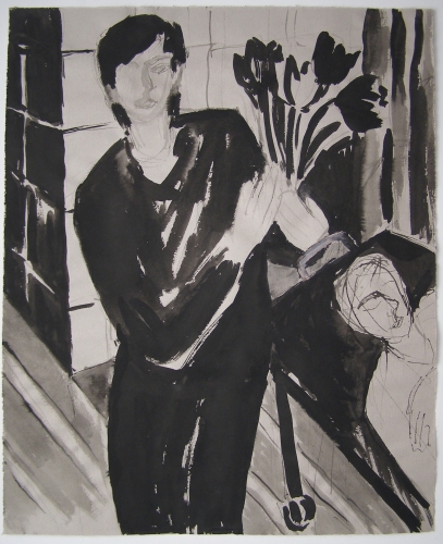 Blumen für die Kranke - Chinatusche auf getöntem Ingres - 42 x 52 cm - 1984